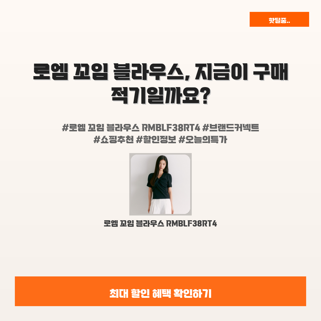 🛍️ 이 포스팅은 네이버 쇼핑 커넥트 활동의 일환으로,판매 발생 시 수수료를 제공받습니다.오늘 소개할 제품은 단언컨데,,바로 로엠 꼬임 블라우스 RMBLF38RT4입니다!요즘 유행하는 스타일을 고민하고 계신가요? 이 블라우스는 특별한 날에도, 일상에서도 모두 잘 어울리는 완벽한 아이템이에요! 여러분의 옷장에 이 멋진 블라우스가 꼭 필요할 것 같지 않나요?많은 분들이 스타일 고민을 하면서도 내가 어떤 옷을 입어야할지 막막한 순간이 있잖아요. 하지만 이 로엠 꼬임 블라우스를 선택하면 그런 고민은 끝! 패션의 완성이죠!게다가 현재 정가 59,900원에 할인 없는 가격으로 제공되니, 이 기회를 놓치지 마세요! 많은 후기와 추천이 있는 이 블라우스, 정말 매력적이지 않나요?※ 이거 진짜 제가 직접 써보고 쓰는 ..